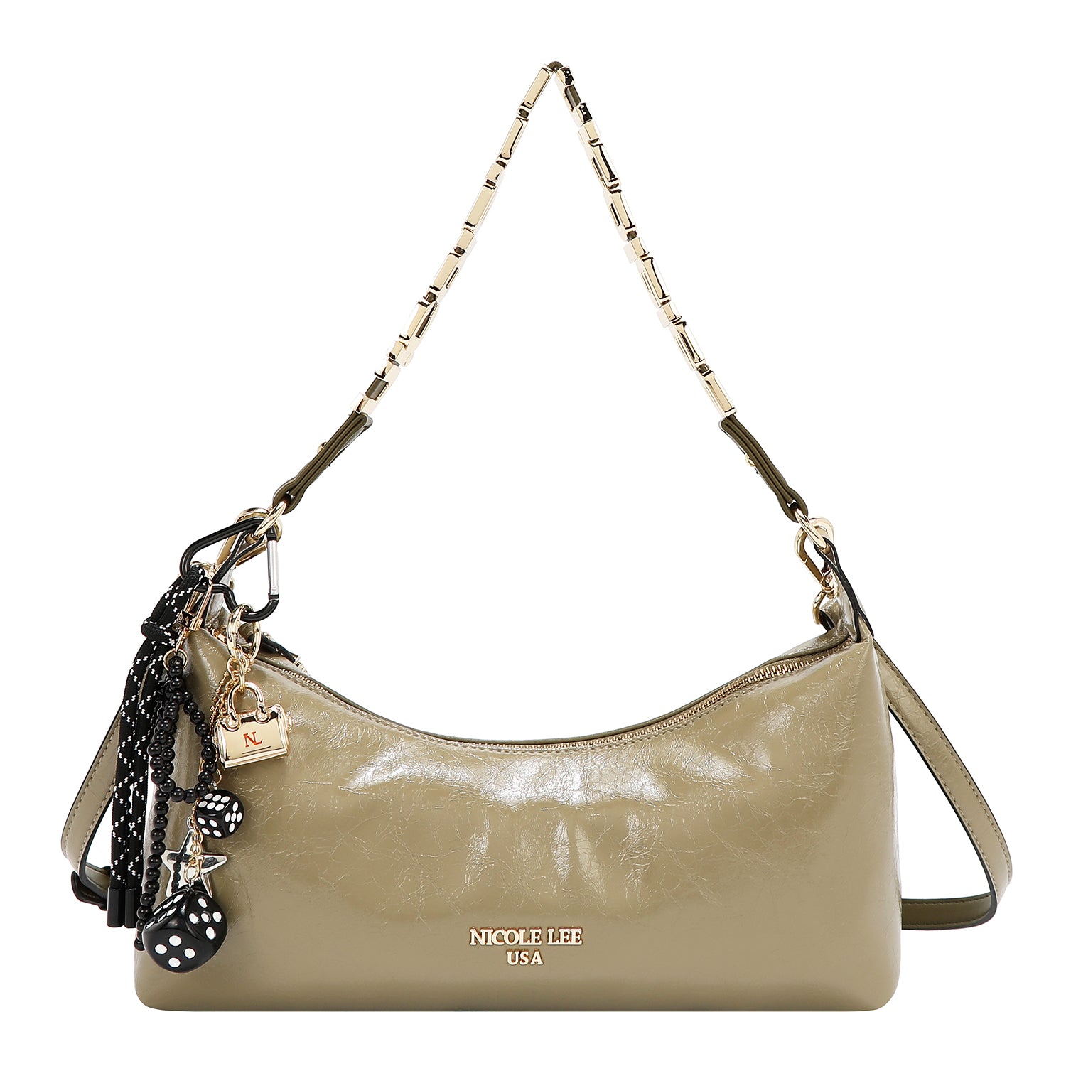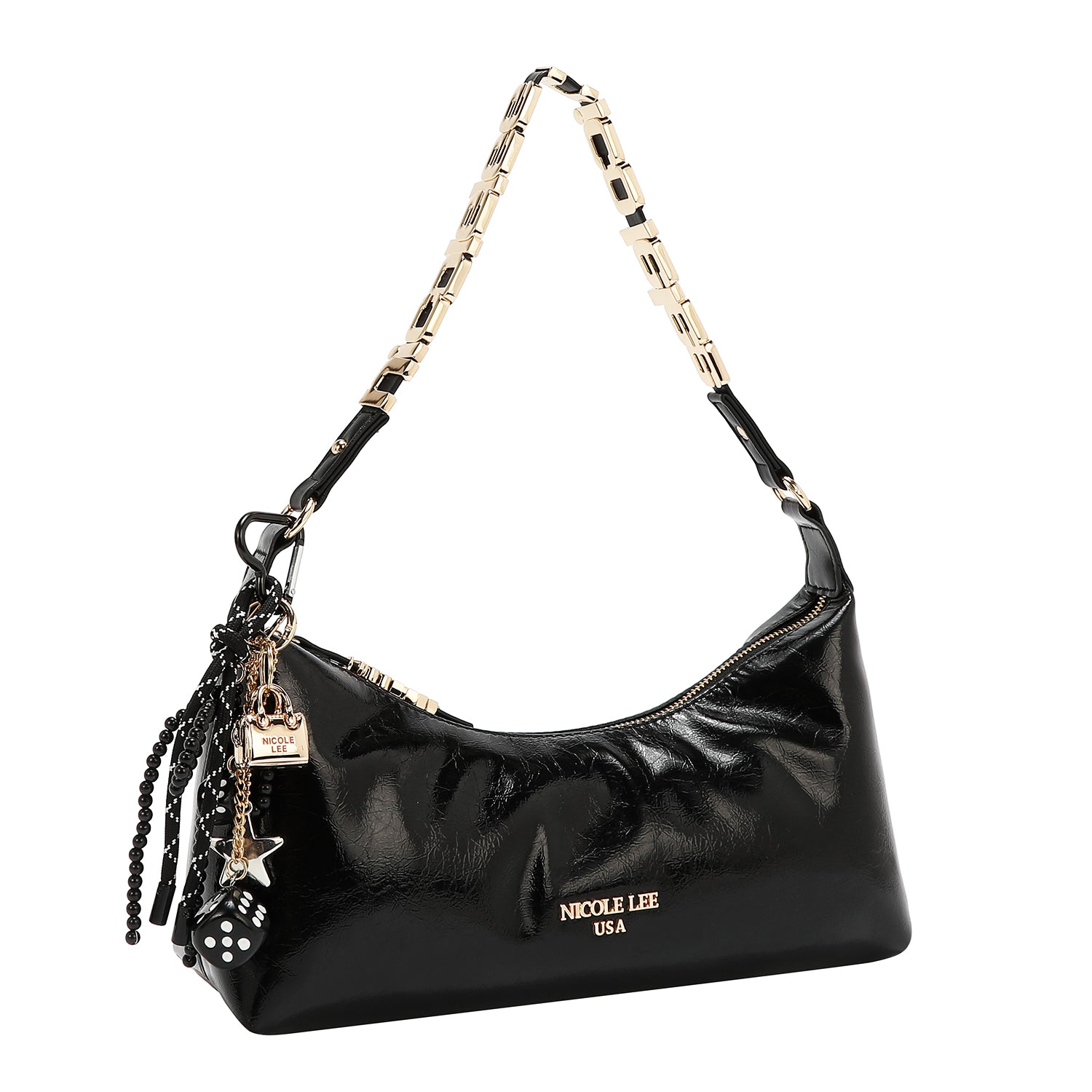 • Flat top handle with gold-tone metal "nicole lee" logo letters (11" drop)