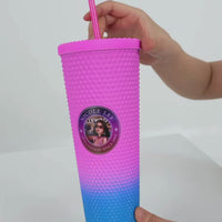 Designed for those who prioritize both comfort and trendiness, stay hydrated and stylish with our new 24 oz tumbler featuring a refreshing ombre design. The studded matte finish provides a non-slip grip that ensures a secure hold, even on the go!