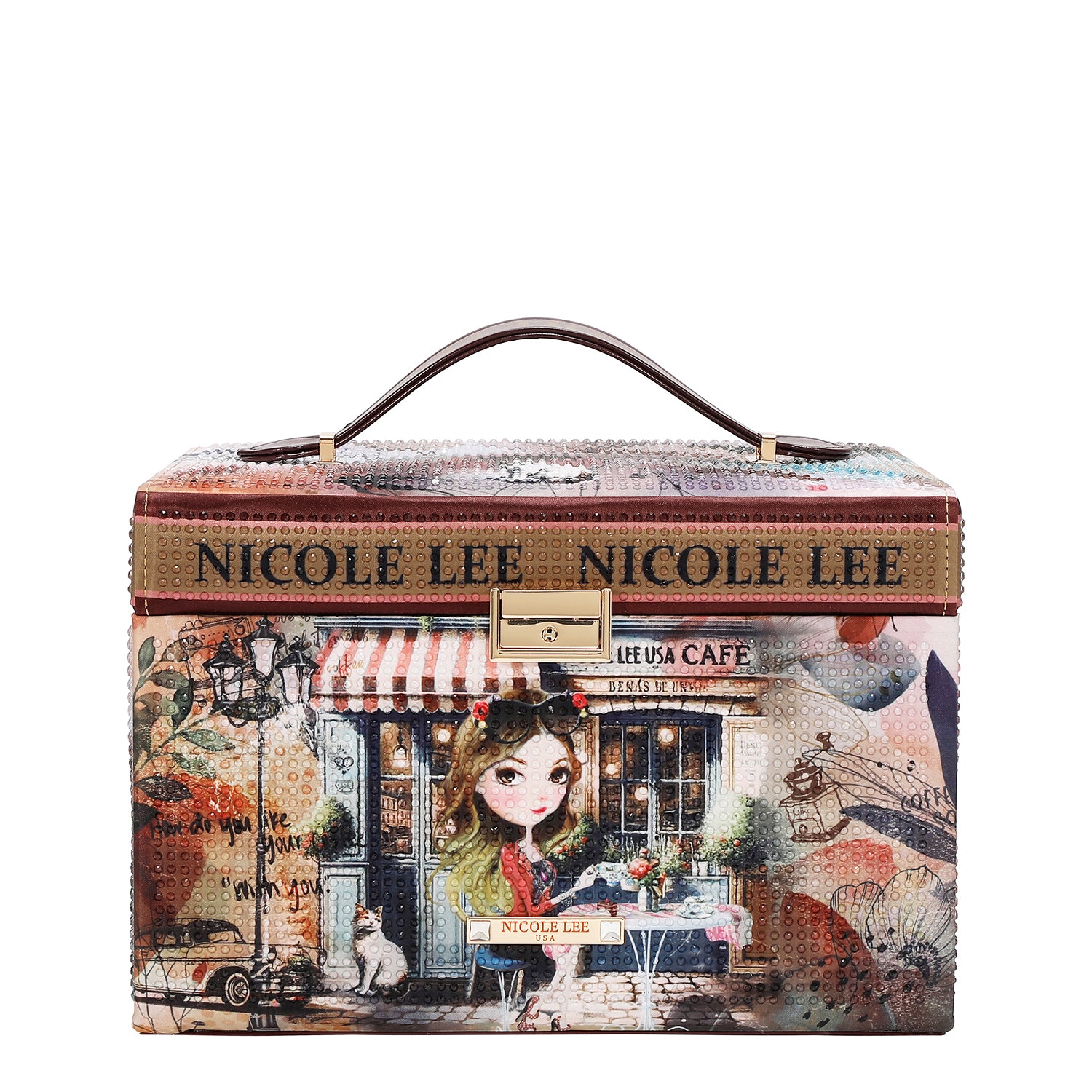 - Lid opens to reveal a mirror, ring and earring storage, necklace hooks, and jewelry