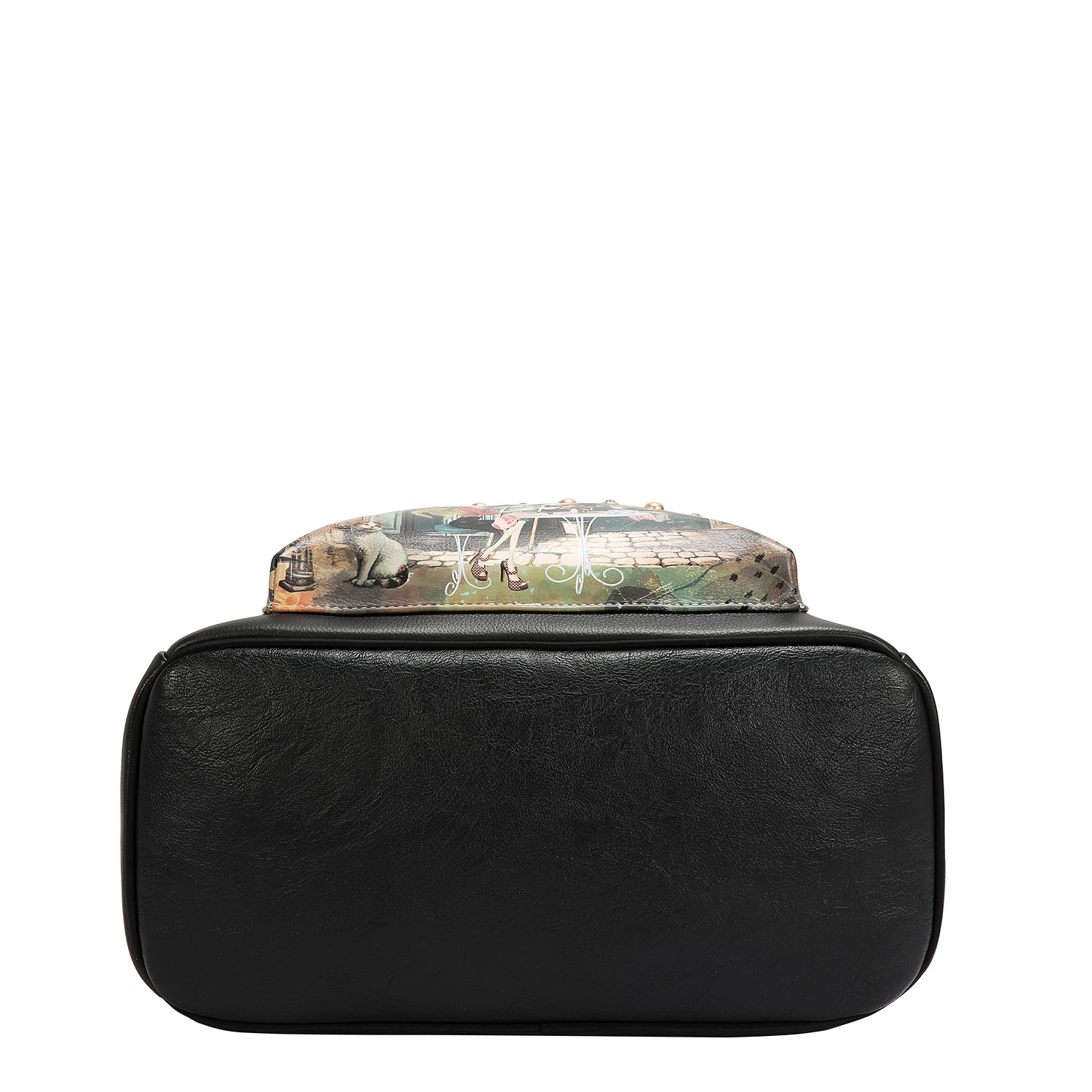 - Front zip pouch studded with diamond rhinestones and studs