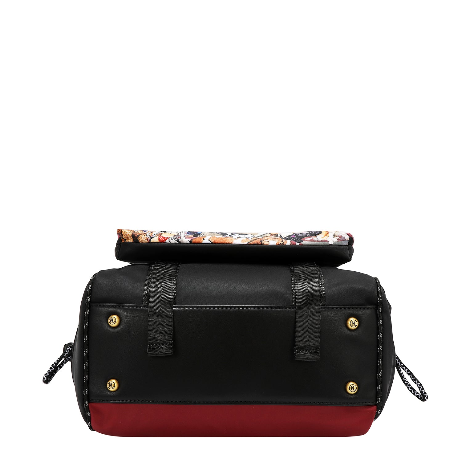 - Lightweight, polyester nylon exterior, mesh material accents with vegan leather accents