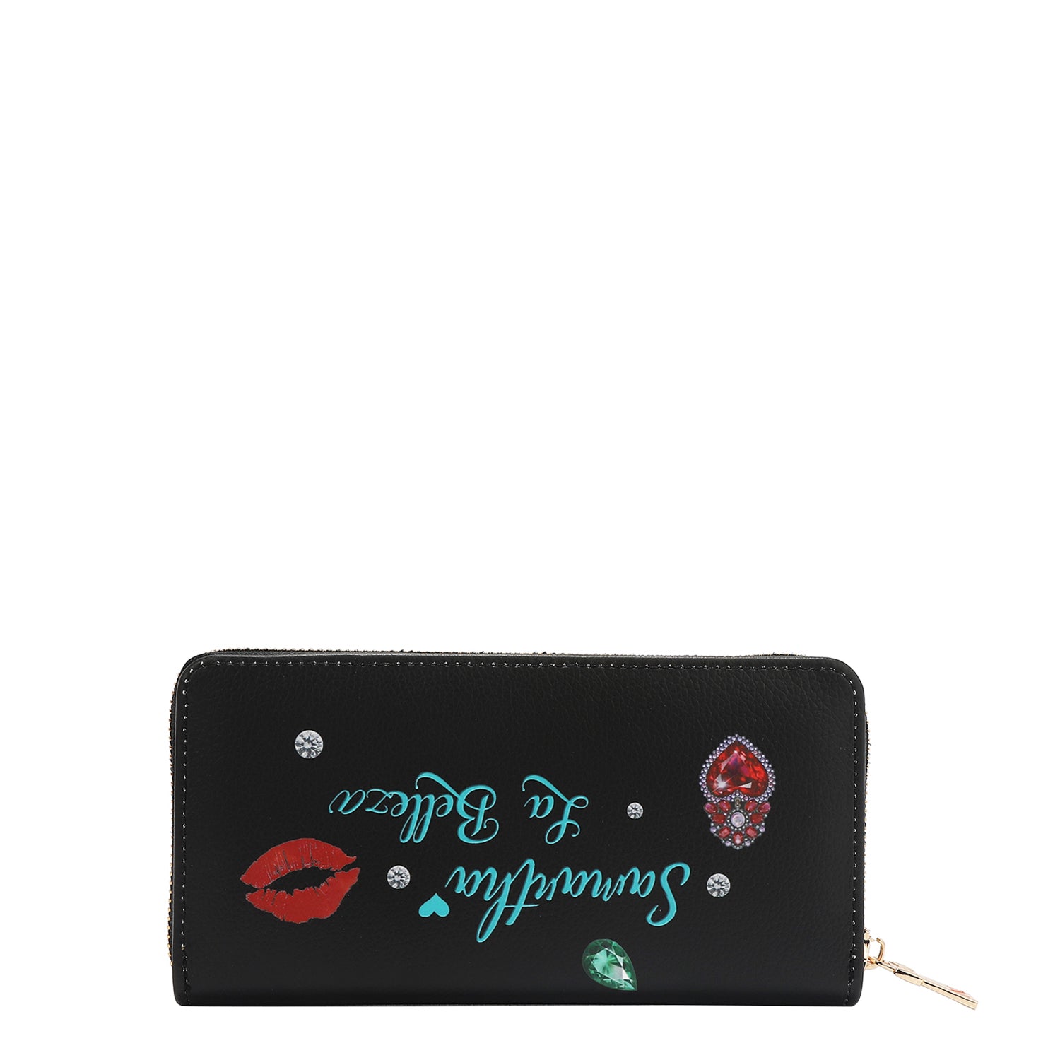 • 2 interior note sleeves, 4 credit card slots, 1 center zip coin compartment